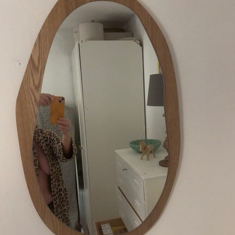 Fin mindre spegel från Åhléns Home med delvis ram i björk. Spegeln har en rundad ovandel och en enkel, rak ram i björk som ger ett stilrent uttryck. Storlek 36 cm x 72 cm.