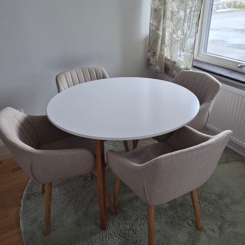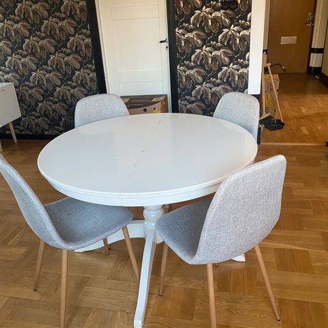 En jätte fint matbord butterfly i diameter 120 cm plus 40 cm. Höjd från golv upp 75cm.