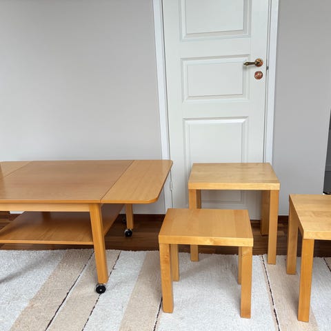 Rullbord + 2 småbord. Hämtas annandagen eller tisdag 8 april.