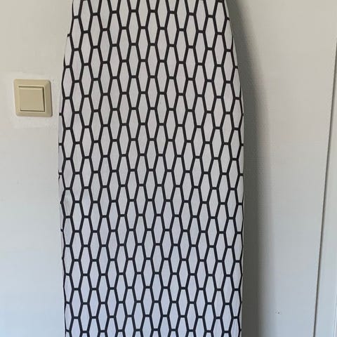 Electrolux strykbräda med eluttag och strykjärnshållare. Strykbrädan har stabil metallstomme med kryssben och höj- och sänkbar funktion. Ovanpå finns ett grönt överdrag med mönster. I änden av brädan finns hållare för strykjärn samt integrerat eluttag med kabel, vilket gör det möjligt att ansluta strykjärn direkt vid brädan. Passar för strykning.