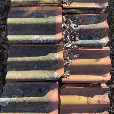 Vi har plockat ner vårt gamla taktegel och bedömer att 50-70 m2 av det är utan skador och ok att använda igen.