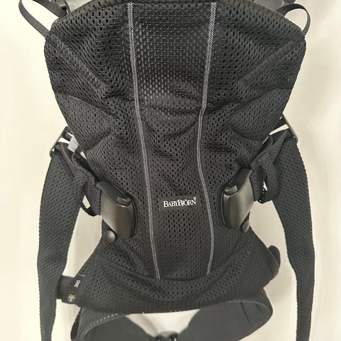 Babybjörn One bärsele i svart meshmaterial. Bärselen har justerbara axelremmar och midjebälte samt flera spännen för säker och stabil passform. Meshmaterialet är luftigt och ger god ventilation. Modellen är avsedd för att bära barn nära kroppen och kan användas i olika bärpositioner enligt tillverkarens anvisningar. Passar för föräldrar och andra vårdnadshavare som behöver en ergonomisk bärlösning vid promenader och vardagsaktiviteter.