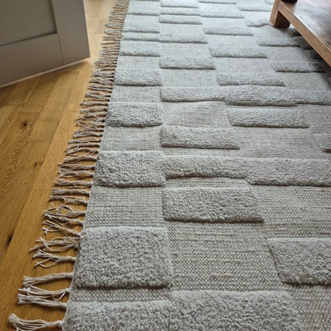 Säljer en ullmatta från Ferm Living. Använd i två år men i gott skick och så gott som ny, bortsett från att den noppat sig på ett par ställen (se bild). Dock inget som påverkar helhetsintrycket. Inga fläckar.