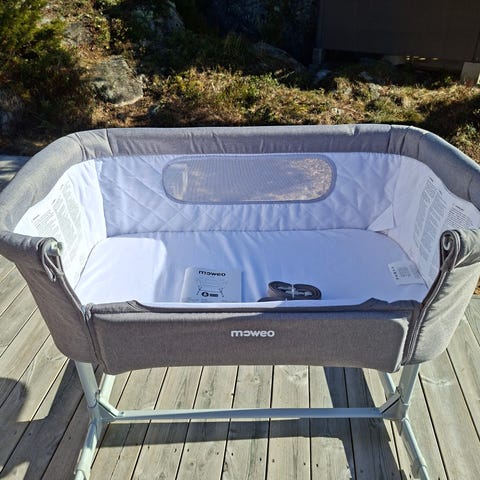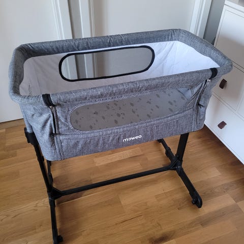 Fin Bedside crib från Moweo bortskänkes