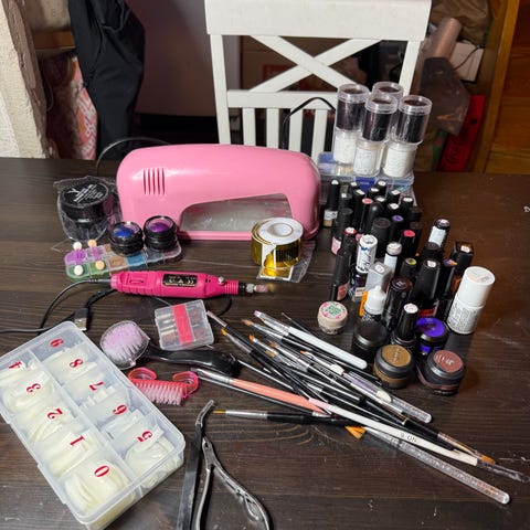 nagelfilar, penslar, dotting tools, nail art-dekorationer, tåavskiljare och träpinnar för nagelvård. Avsett för härdning av gel- och shellacknaglar hemma eller i mindre salongsmiljö.