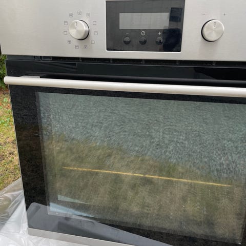 Siemens inbyggnadsugn med varmluftsfunktion. Front i svart glas med rostfri panel och handtag. Ugnsutrymmet har flera inskjutningsnivåer med galler och plåtar. Ugnsluckan har stor glasruta för insyn. Avsedd för inbyggnad i köksskåp. Passar för vanlig matlagning, bakning och varmluftstillagning. Mått enligt bild med tumstock, standardstorlek för inbyggnadsugn.priset kan diskutera vid snabb affär.