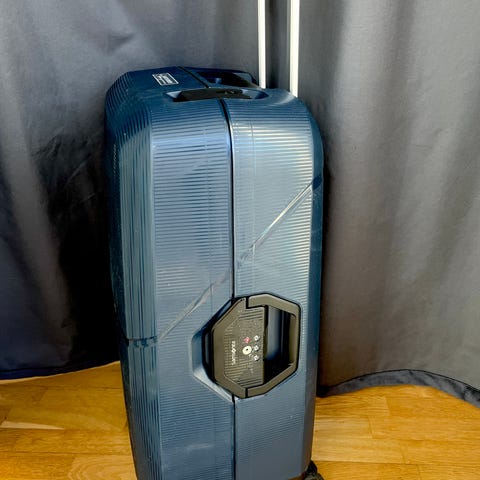 Expanderbar resväska i färgen marinblå (navy blue). Hård väska tillverkad av polypropylen, känd för att vara både tålig och lätt. Finns två. Den ena är aldrig använd, är kvar i originalemballage. Den andra är använd en gång. 1000 kr/styck.