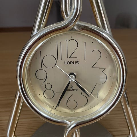 Unik/ovanlig väckarklocka/bordsur ”Kundo” från Quartz. Fint skick. Fungerar fint. Nyköpt batteri som ingår. Ca 7.5 cm bred och 9.5 cm hög. Jag har hittat liknande klockar för 900 kr.