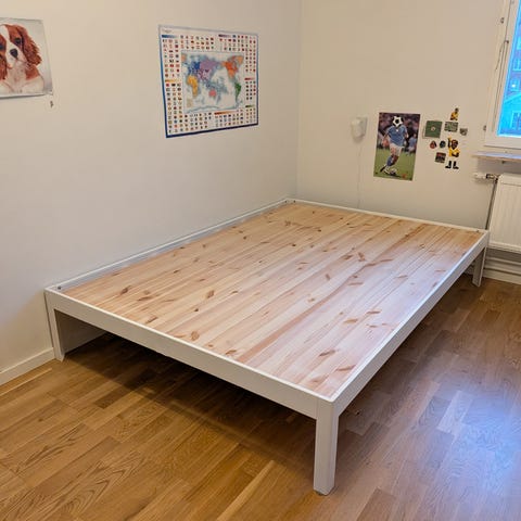 Säljer min sängram pga. flytt. Några kosmetiska skador, men annars i bra skick, köpt 2 år sen.