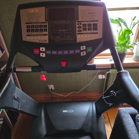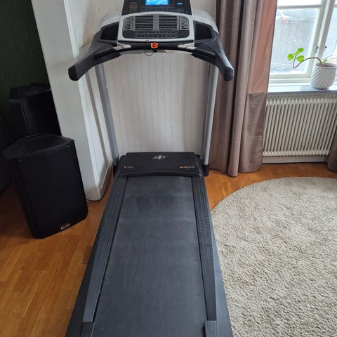 Löpbandet har automatisk lutning 0–10 %. Mycket bra dämpning. Konsolen visar träningsdata och har styrning för hastighet och lutning. Passar för gång och löpning inomhus i hem- eller hobbygym.