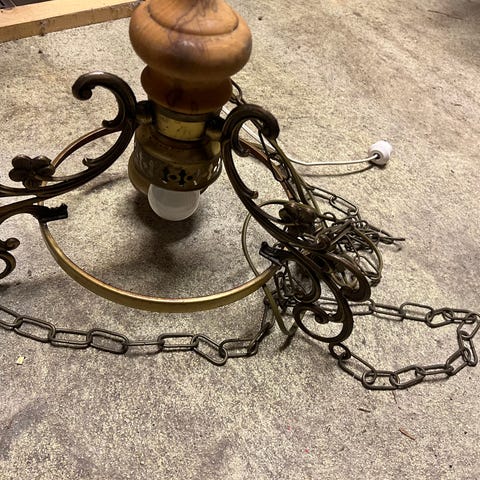Charmig TAKLAMPA i trä med 4 textil skärmar
