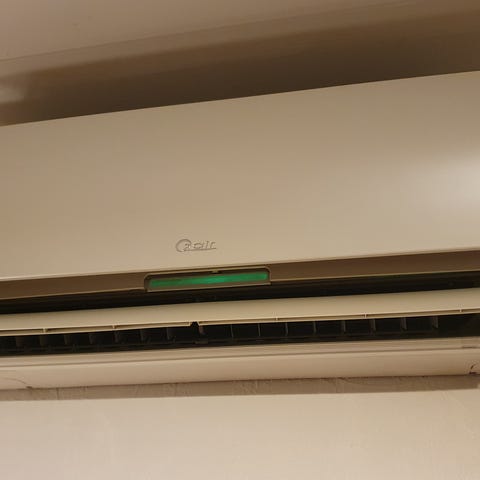 Innerdelen är i mycket gott skick och har alltid rengjorts regelbundet. Fläkt och AC fungerar fortfarande som de ska, men enheten ger inte längre värme. Felet beror troligen på en defekt värmeväxlare eller liknande komponent.