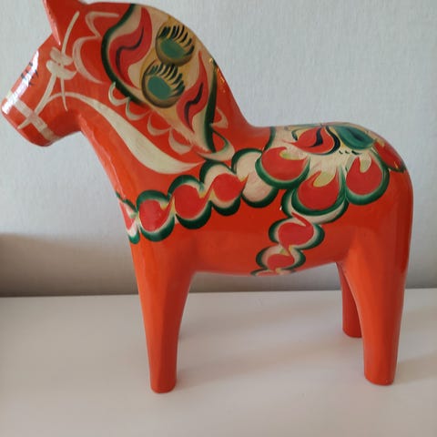 Dalahästarna är nya och det finns inte ett märke på den, endast framtagna för att fotas.