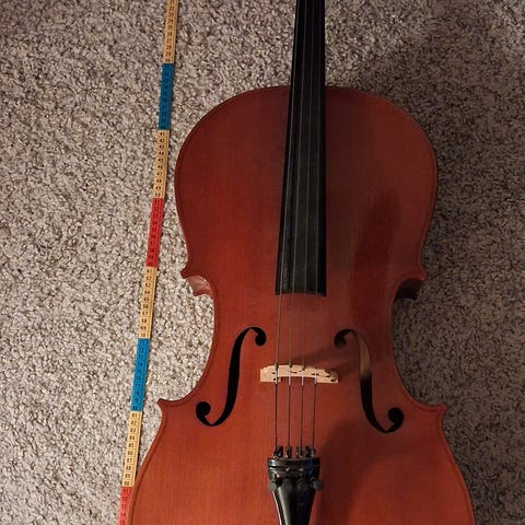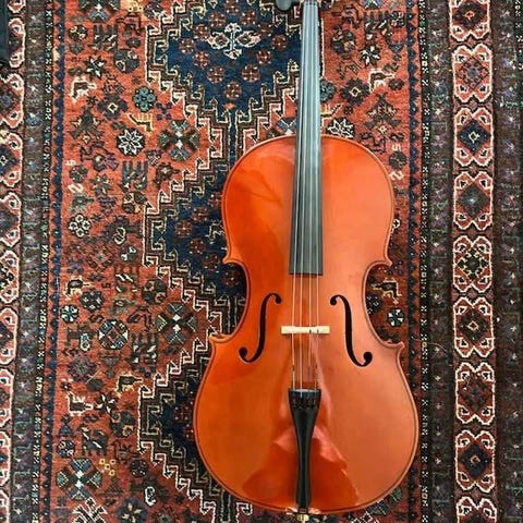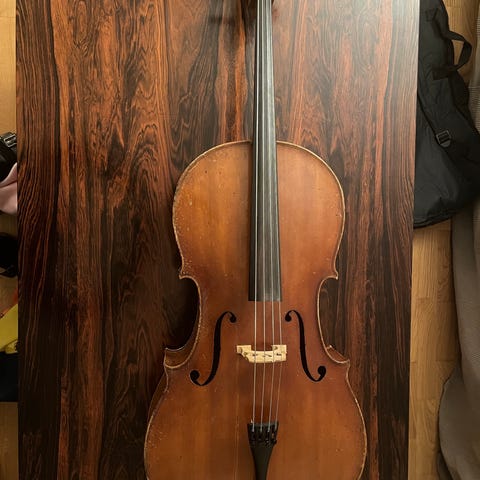 Okänd cello med stråke i trä, brun färg säljes för dödsbos räkning. Ålder okänt men ca 75 år gammal. 1 ägare Instrumentet har klassisk form med fyra stämskruvar och dragpinne i botten. Kroppen är i lackerat trä med ådring på baksidan. Inkl två stråkar i trä med monterad tagel. Passar för cellospel i exempelvis orkester, kammarmusik eller övning hemma. Fodral finns