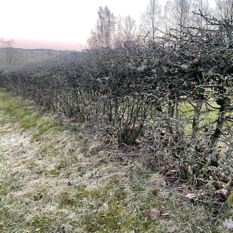 En dryga 15 m lång syrenhäck som är runt 15 år gammal. Den har klippts på ca 2 m höjd men skulle nog gärna bli högre. Vi planerar att ta bort den. Någon som är intresserad eller vet någon som är intresserad? Det behövs grävmaskin för att få bort den och försiktighet med kablar. Kostnader för uppgrävning och pris får diskuteras.
