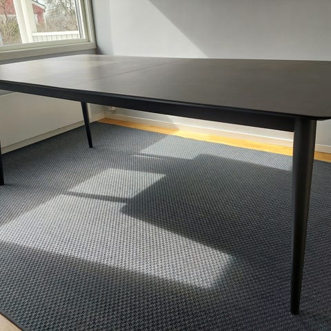 Bordet är 200cm i kortaste läget och har två iläggskivor som förvaras under bordet, med båda i så blir bordet 300cm.