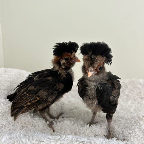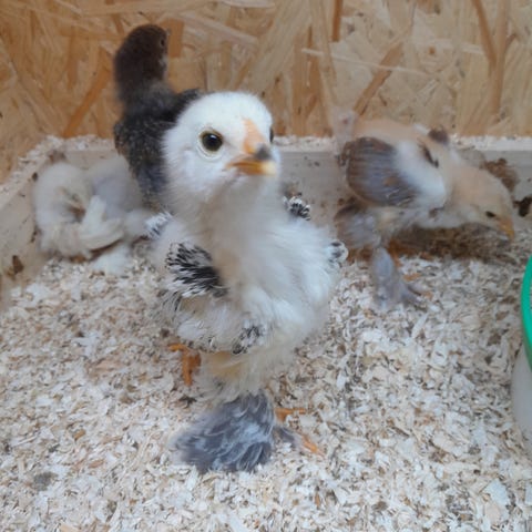 11 Kycklingar ur färgglada ägg, kläckta sista helgen i mars är nu redo att flytta till nya hönsgårdar.