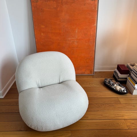 Säljer en fåtölj från Danska Gubi - Beetle Lounge Chair, klädd i ett exklusivt sammetstyg i grå/blått, inget av deras standard tyger.