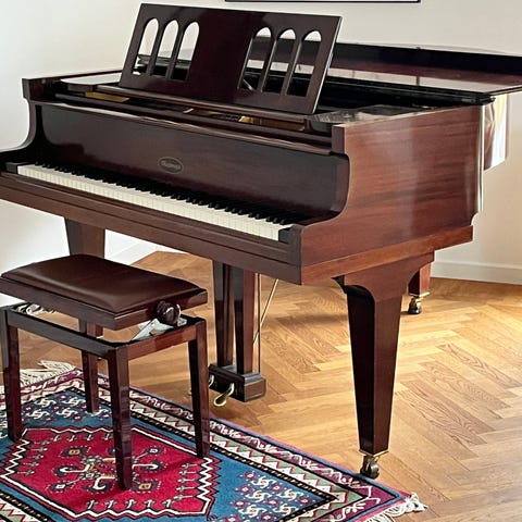 J.G. Malmsjö flygel i träutförande. Instrumentet har full klaviatur och synlig sträng- och mekanikkonstruktion under öppningsbart lock. Serienummer 4539 finns stämplat på insidan. Passar som musikinstrument eller som inredningsdetalj i hem, studio eller offentlig miljö.