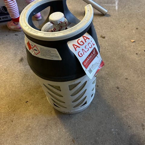 Gasolvagn/kärra i metall med två luftgummihjul. Passande för att köra tex svets-tuber.