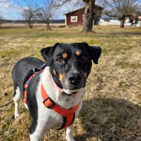 Han har separationsångest så han behöver ett hem där han inte behöver vara själv så mycket. Han blir framförallt stressad när han blir lämnad och skäller då. När man kommer tillbaka brukar han oftast ligga och vila.