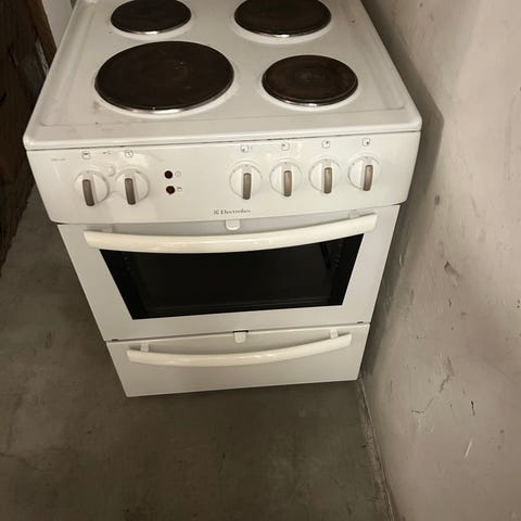 UPO spis med flera plattor och ugn. Spisen är fristående och ansluts med 400V enligt kopplingsschemat på baksidan. Övre delen har vred för reglering av plattor och ugnsfunktioner. Spisen är vit och har glaslucka till ugnen samt förvaringslåda eller utrymme längst ned.