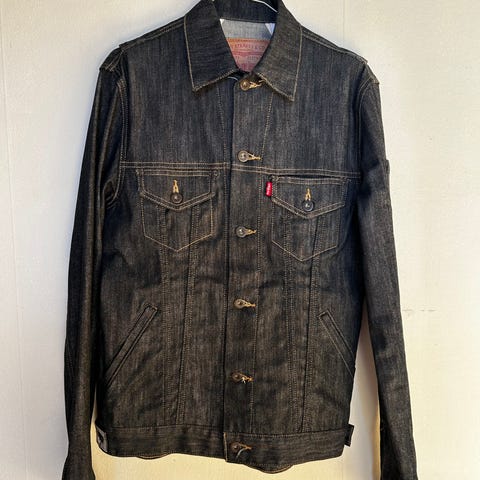 Säljer en klassisk Levi’s jeansjacka i mörkblå denim.