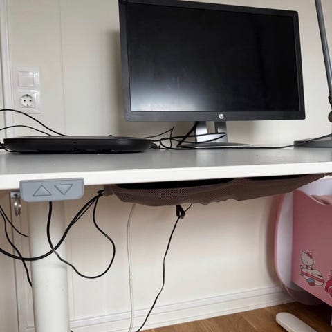 Ett stabilt skrivbord som går att både höja och sänka. Säljs pga det inte får plats i den nya lägenheten.