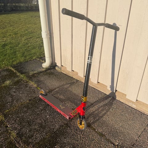 Hult sparkcykel i svart med guldfärgade detaljer. Stabilt deck med grepptejp och styre med T-form. Små hjul anpassade för trick- och stadskörning. Passar för barn eller ungdom beroende på längd och viktbegränsning från tillverkaren.