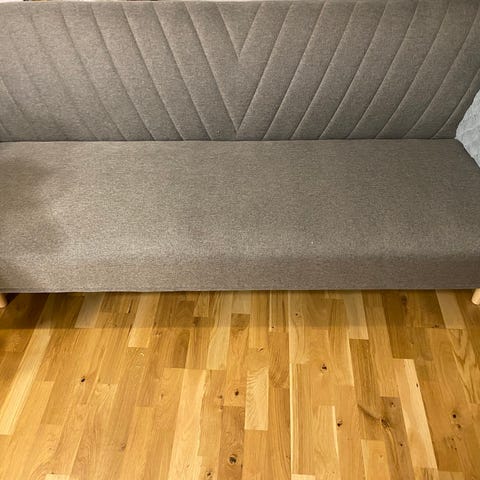 Bäddsoffa med flyttbar divan från IKEA, ”Friheten” i färgen Skiftebo mörkgrå. Det finns förvaringsutrymme och det ingår en bäddmadrass i nyskick, endast använd en gång. Sofftyget är utan fläckar. Det finns en katt i hemmet, så på några ställen vilket framgår i bilden finns små små trådar som klösmärken men inget som syns direkt vid första anblick. Säljes demonterad.