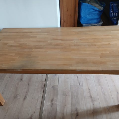 Middagsbord i trä, finns små repor i bordet men inga större skador. 170x85