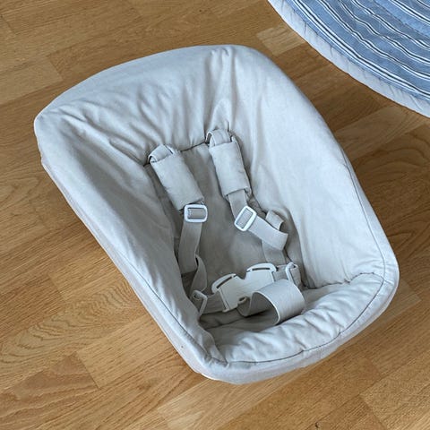 Stokke barnstol babysits i beige tyg med vadderad sits. Utrustad med justerbart säkerhetsbälte med flera fästpunkter. Passar som insats till Stokke barnstol för spädbarn, ger stöd och en mer upprätt position vid matbord eller vila. Neutralt färgsatt textilklädsel som passar de flesta hemmiljöer.