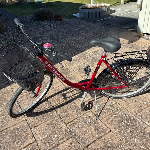 Cykeln är i fint skick, lite små skrap och korgen lite bucklig (går att montera bort eller justera om man vill)
