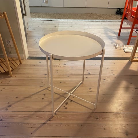 Du kan enkelt lyfta och flytta hela bordet, exempelvis från soffan till läsfåtöljen.