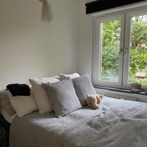 Sängöverkast i puderrosa sammet med fina detaljer från Odd Molly. Nypris 4000 kr.