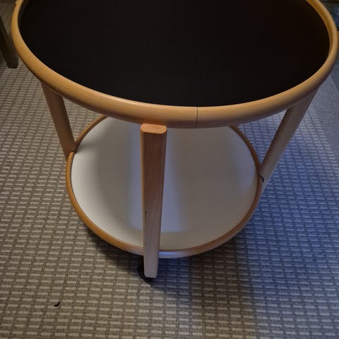 Fina brickbord med spegelbotten. 350 kr för båda eller 200 kr styck. 40,5 cm i diameter och 54 cm höga.