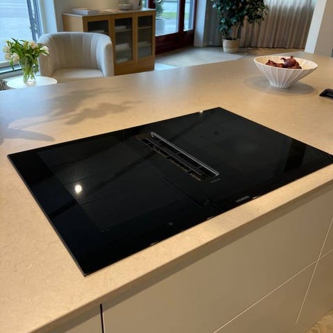 Siemens induktionshäll i svart glas. 90 cm bred och 50 djup. Hällen är infälld i bänkskiva och har en slät glasyta som är lätt att rengöra. Induktionshällar ger snabb uppvärmning och exakt temperaturkontroll, och fungerar med kokkärl som är anpassade för induktion. Passar för inbyggnad i kök med modern bänkskiva och ger en plan arbetsyta runt hällen.