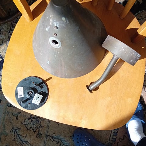 Ikea taklampa formgiven av Aage Petersen. Taklampan är tillverkad i metall i en silverfärgad/ljusgrå ton med rund skärm och innerreflektor som riktar ljuset nedåt. Lampan hängs i spiralupphängning med sladd och stickkontakt. Passar för standard glödlampa/LED‑lampa med vanlig sockel (se bild för typ). Lämplig som allmänbelysning över bord eller i rum där riktat nedåtriktat ljus önskas.