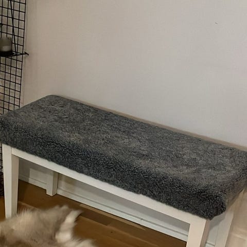 Ingår mjuk och bekväm sittdyna (fårskinn-look) som gör den extra mysig.