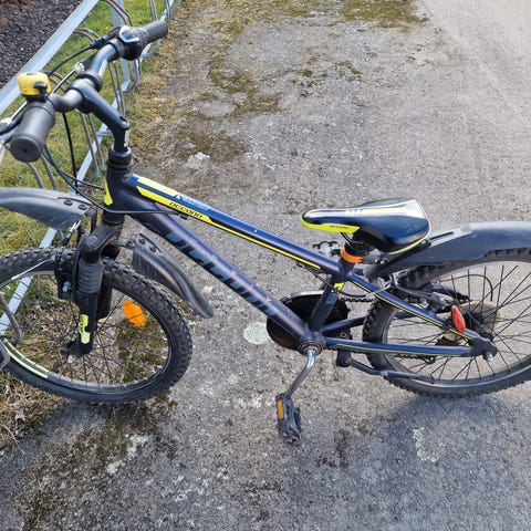 Säljer sonens cykel som är fint använt skick. 3 växlar. Hand- och fotbroms. Pakethållare. Stötdämpare fram.