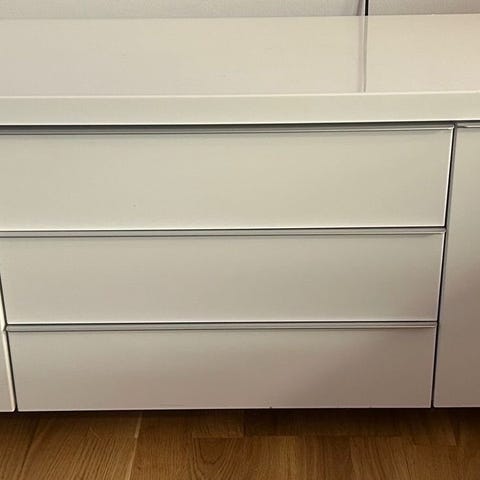 Säljer tv-bänk och vägghylla/skåp från Ikea modell Bestå Burs i vit pianolack i fint skick.