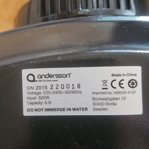 Unopened crockpot slow cooker 5.6 L, bought but never used. 1289 kr new from Elgiganten.