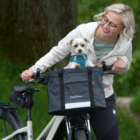Korgen är avsedd för montering på cykelstyre och passar mindre hundar. Den har bärhandtag, justerbara remmar och reflexdetaljer på sidorna. Insidan är vadderad för ökad komfort. Utsidan har nätficka och förstärkta kanter för stabilitet under cykling.
