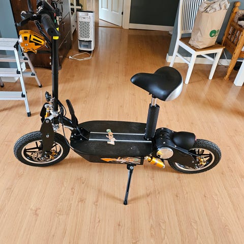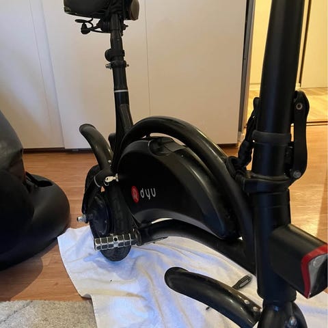 En mini elcyckel kör 25 kmh har en 36v batteri funkar som den ska men fram bromsen är ganska svag och fram däcken måste pumpas och kommer med laddare vid snabb affär så kan jag sånka priset inte säker men tror att den har en 250watt motor