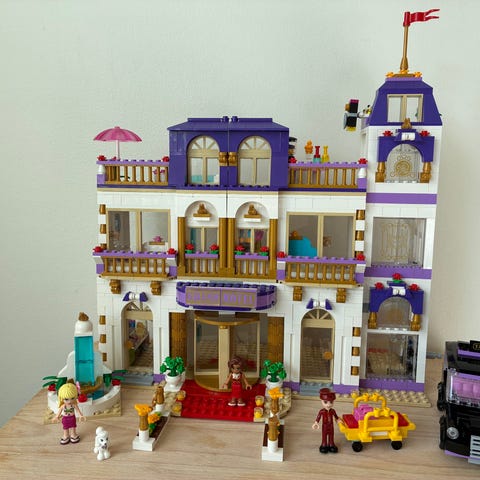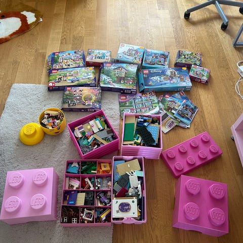 LEGO Friends byggset med flera olika modeller. Original värde ca 8000kr. Blandat med Grand hotell, horse ranch, shopping mall, flygplan, korvkiosk, tivoli, frisör, mataffär, och mera. Säljs som paket. Alla gubbar och reserv delar finns i blå lådan (se bild). Upphämtas idag eller imorgon. Pris kan diskuteras.