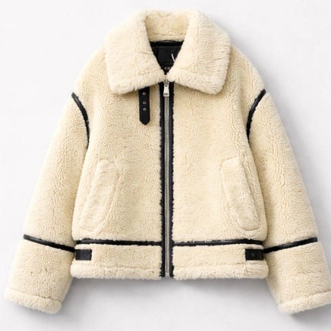 Den här kappan i lammskinn är både skön och chic, och den har en tjock päls på insidan som kikar fram vid krage, knappslå, ärmslut och nederkant. Den har en skön passform som slutar mitt på låret, med en ofodrad konstruktion med råa kanter. Med detaljer som knäppning med knappar, påsydda fickor, passpoalfickor samt ett halsskydd. Plagget har en relaxed fit. För en mer figurnära passform rekommenderar vi att du väljer en mindre storlek.