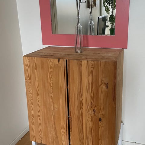 Glasskiva som just nu ligger på två IKEA Ivar väggskåp (de djupa )