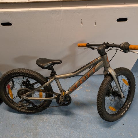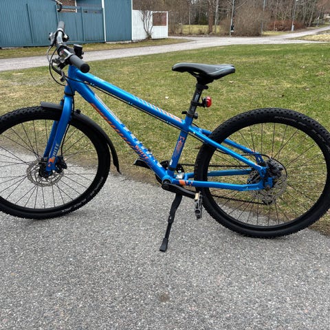 Välanvänd cykel från Islabikes 20 tum. Modell Beinn 20 small. Lättviktscykel med dubbla handbromsar och 7 växlar. Med reflexer, ringklocka, stöd och framskärm, saknar dock bakskärm. Liten skada i sadeln. Växlarna behöver justeras.