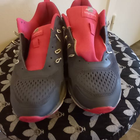 Nike löparskor i storlek 39. Skorna är i rosa med guld- och svarta detaljer samt svart snörning. Ovandelen är i lätt textilmaterial och sulan är utformad för löpning. Passar för löpning och annan träning där lätta och dämpade skor önskas.