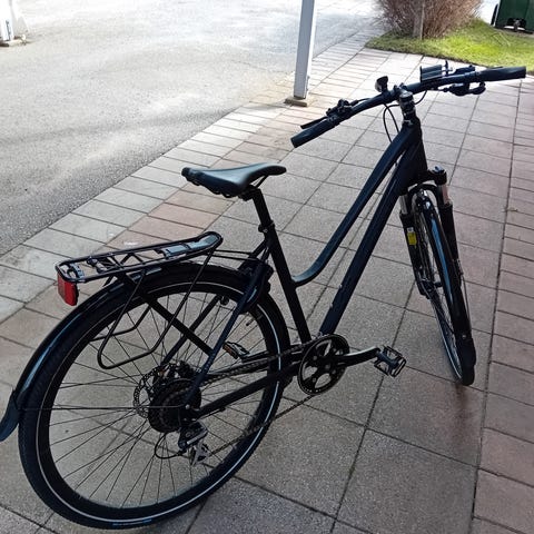 Hej, säljer min hybridcykel ifrån XXL, nypris 3000 kr. 7 växlar, skivbromsar fram och bak. Den är av märket "White". Funkar fint, enda problemet är ett tjutande ljud ifrån skivbromsarna vid bromsning. Har haft den i ungefär 2 år, säljer den eftersom att jag helt enkelt inte använder den längre.